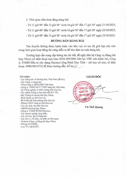 Thông báo hàng hải khu vực cấm hoạt động hàng hải